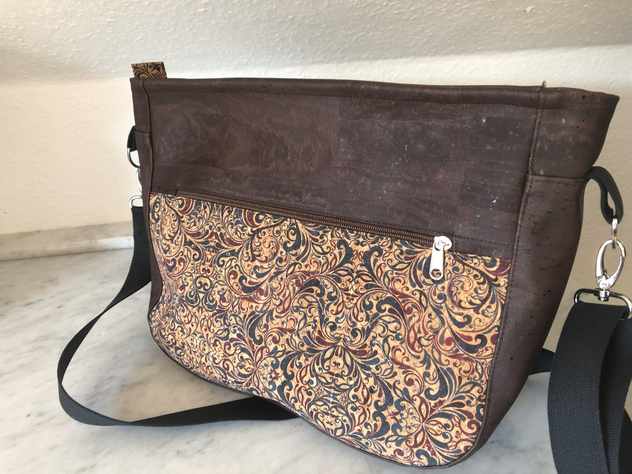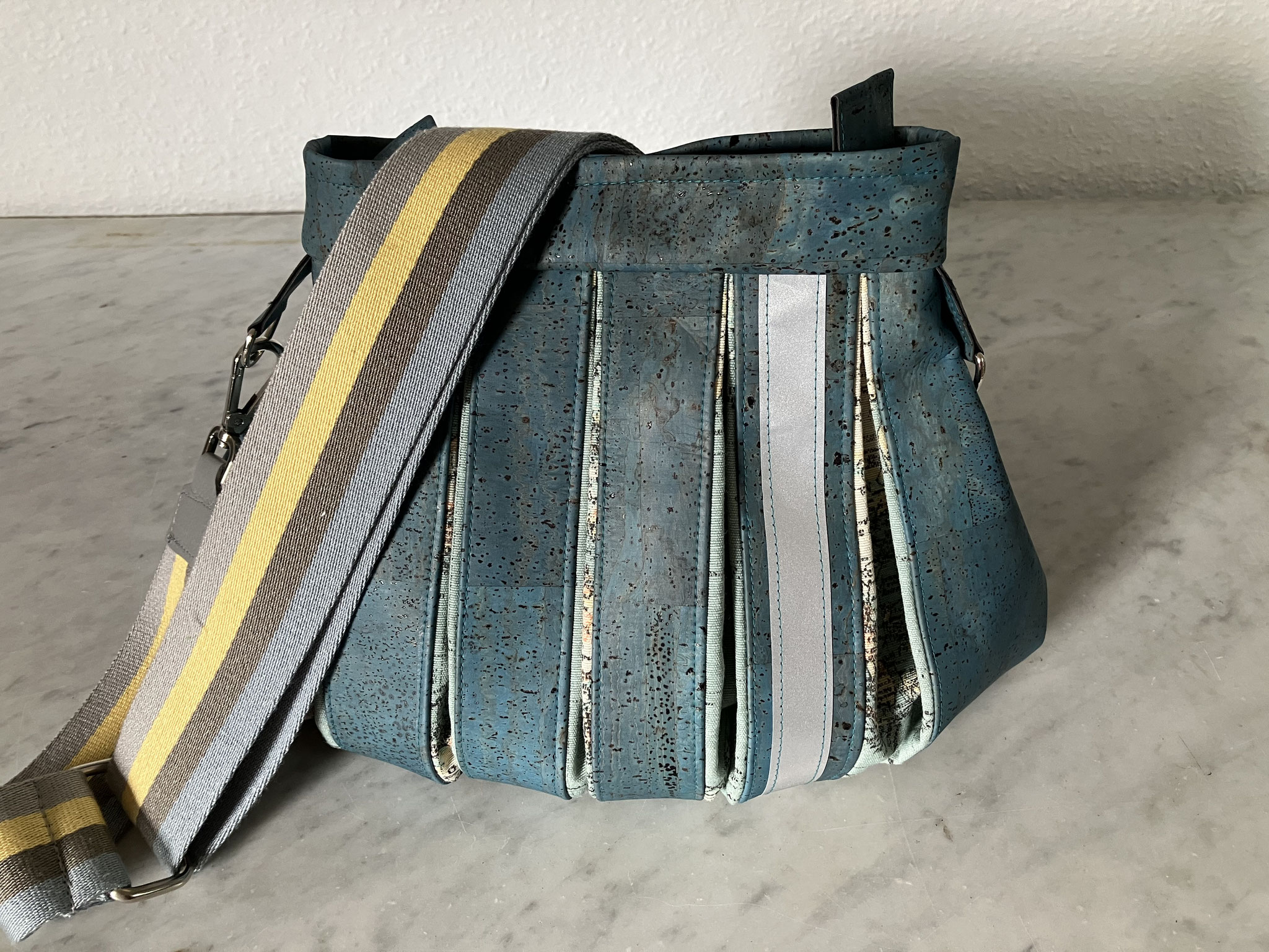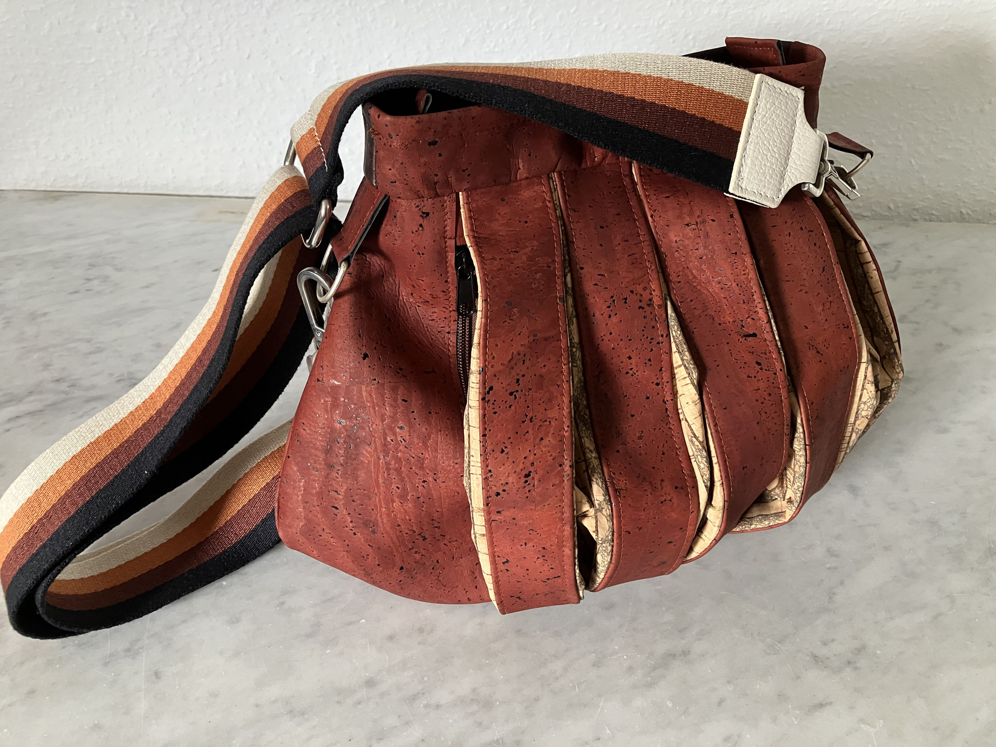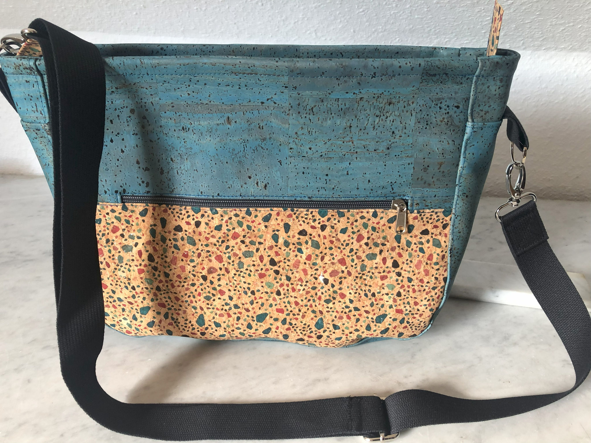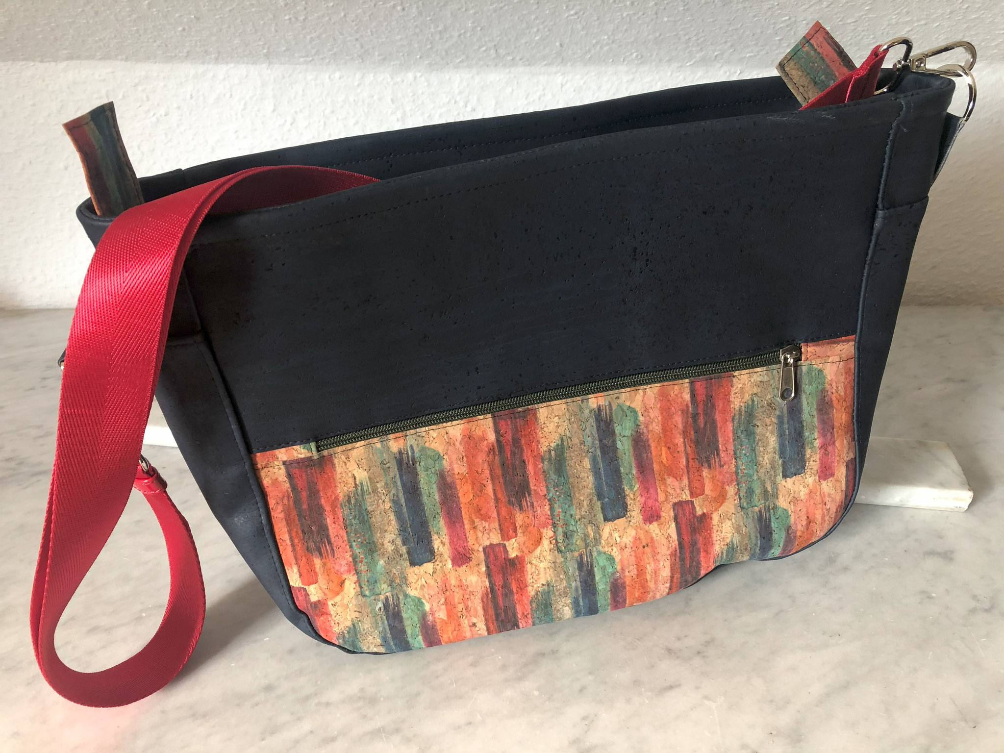 Gerne fertige ich auf Wunsch auch Taschen in dezenteren Farben oder mit anderen Stoffen wie zum Beispiel Korkstoff oder feinem Leder an.