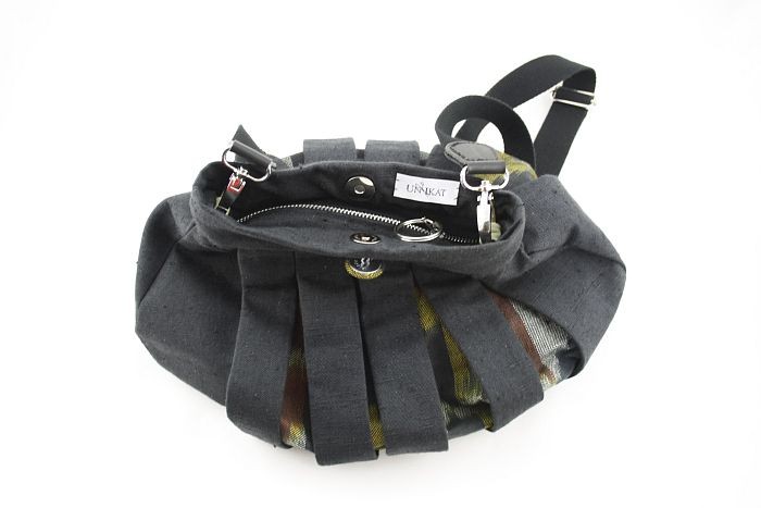 Das unverwechselbare Taschendesign von Un-Ikat ist die Faltentasche. Ihre Entwicklung geht auf die Inspiration der Falten und Schlitze in historischer Kleidung zu Zeit der Renaissance zurück. Das Design der Umhängetasche kam später hinzu sie ist klassischer in der Schnittführung.